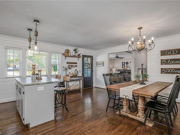 If you are looking for a charming, ranch style home with plenty of space and high-end finishes, you've found it! Rocking chair front porch, with a Charleston inspired pop of blue, perfect for relaxing! Kitchen is open to the living area, creating a spacious and inviting feel. Leathered granite countertops, farmhouse sink, subway tile backsplash, and a large island make this kitchen a dream for any cook. Walk in pantry provides storage space for all of your kitchen essentials. 3/4” oak hardwoods throughout! Stunning Primary suite with vaulted ceiling, chandelier lighting, separate mini-split for climate control, and walk-in closet make this a true retreat. Laundry/office is a great versatile space. The heated/cooled building has a variety of potential uses, such as a workshop, game room, or additional storage. Large carport provides covered parking and the additional concrete allows plenty of parking for you and your guests. Unfinished basement, perfect for storage. County schools!