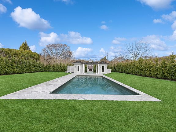 Located at 210 Bluff Road in Amagansett, this stunning estate offers an impeccable blend of luxury, comfort, and oceanfront living. The first floor welcomes you with a grand entryway, featuring a striking architectural staircase that sets the tone for the home's elegant design. The formal dining room, complete with a wine closet, is perfect for entertaining, while the chef's kitchen is a culinary enthusiast's dream, equipped with Miele appliances, Wolf range, dual sinks, and a spacious center island with bar seating. The kitchen flows into an informal dining area and a family room with a cozy fireplace. Additional first-floor features include a mudroom, powder room, pantry closet, office/den, and a living room with sliders that open to the backyard. This home also includes modern extras like electric shades in the bedrooms, a security system, a Sonos Sound System throughout, Lutron lighting system, and TVs in every room for the ultimate in luxury living. The second level is dedicated to relaxation and privacy, with an array of en suite bedrooms, each offering unique views and luxury amenities. The primary suite is a true retreat, with dual walk-in closets, a canopy bed, and a spa-like master bath with a tub, standing shower, dual vanities, and a private balcony overlooking the ocean. Four additional guest bedrooms are also located on this floor, each with en suite bathrooms. For added convenience, the second level includes a laundry room with dual Electrolux washers and dryers. The home's third level features a secret door leading to a rooftop deck that offers sweeping ocean views. A full wet bar with a mini fridge and ice maker completes this floor. The lower level of the home is designed for ultimate leisure and wellness, featuring a sitting room, a full theater, a gym with access to the outdoors, and a sauna and steam shower. Additional guest accommodations include two en suite bedrooms - one with two queen beds - plus an additional laundry room. Outside, the property boasts a gated entry, ample parking, a detached two-car garage, and a large backyard with a covered al fresco dining area, outdoor grill, heated gunite pool, and spa. The pool house includes a wet bar, mini fridge, powder/changing room, and an outdoor fireplace under a pergola with an outdoor TV, creating the perfect space for relaxation.