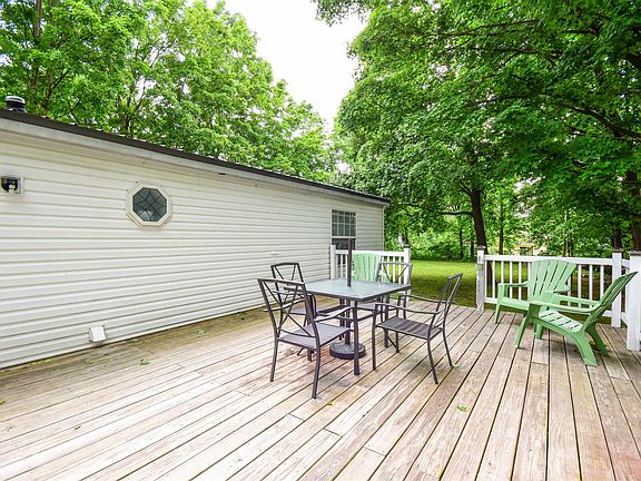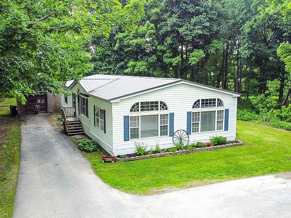Spacious one level home in the heart of town, but tucked back with a large yard and sunny deck and even a horseshoe pit for fun summer nights. This manufactured home was completely renovated in the last couple years with new flooring, fresh paint and a new heating system. The kitchen opens to the dining area and the large living/family room encompasses the entire front of the house with ample windows letting the light in. Laundry room with sink and door to deck and yard. All 3 bedrooms have large closets and primary bedroom has a bright and open bathroom and walk in closet. Partial basement for utilities and storage shed. There is also a garage, though it needs some updating. Beautiful home at incredible price!