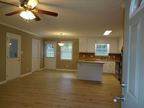Completely remodeled with new paint, light fixtures, high quality LVP throughout, exterior doors, 2" faux wood blinds on all windows, closet shelving, and appliances. The house has an open floor plan and features white cabinets and new island/breakfast bar that is open to the family room. The primary bedroom features a trey ceiling and private bath with a recently glazed tub. There are two generous secondary bedrooms and shared hall bath with recently glazed tub. There are 3 closets in the hallway and a large laundry room with additional shelving plus a room off the carport for storage. The property is owned by a real estate agent licensed in Georgia and is acting as a principal in this transaction. The tenant is responsible for paying the electric, water, trash collection, and lawn maintenance. I do not allow indoor smoking, pets, and do not accept Section 8 or rent assistance of any kind.