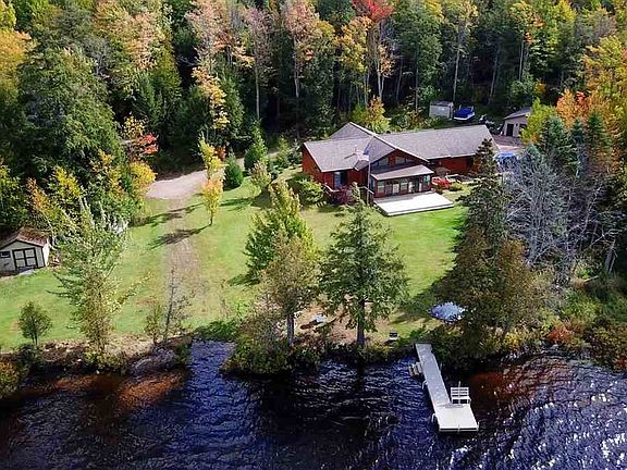 ***This home has been pre-inspected! Report available upon request!*** Over three acres! Over 150 feet of water frontage! Built in 2007 - stick built - not a modular! Attached garage and detached garage/workshop! And only 14 miles from Marquette! And on a year round road county maintained road! This is the one you've been waiting for! This beautiful lake front home sits in the most beautiful and private setting and boasts three beds and two baths and nearly 2,000 sq ft all on one floor for easy living. Every detail of this home rises up to greet you, starting with the hand carved Loon door on the welcoming front porch. Once inside, the vaulted ceilings make the open concept kitchen, living and dining feel light and airy. It's hard to know whether to turn your attention to the beautiful light through the trapezoid windows, the gorgeous views through the sliding doors to the lake or the focal point fireplace flanked by custom built in shelves. Beauty abounds everywhere you look! The kitchen was painstakingly designed with custom cabinetry, pull out shelves, large pantry, stainless steel appliances, built in computer desk, and large window over the sink with serene views of the lake. The in floor radiant heat throughout the home including the kitchen will keep your feet nice and toasty! The three season room was recently added to the home and is a great place for family to gather for food, games and laughter after a day playing on the lake. The master bedroom has it's own sliding glass doors to the back deck and amazing views of the lake. The sunsets from this point on the lake are absolutely breathtaking. The master also boasts a huge walk in closet and dedicated master bath with low threshold shower and lots of built in storage. Almost all of the doors, cabinetry and trim in this home are solid Cherry hardwood and it's gorgeous. The second bedroom also has a walk in closet and a lovely view of the front apple trees. The third bedroom would also make a great office or hobby room, as it is used now. There is a second bath right outside both of these rooms convenient to the bedrooms and to the living room. Your main floor laundry room is conveniently located just inside the mudroom area. Outside the grounds have been landscaped and trees and perennials bloom throughout summer. There is more than enough room for a family pickup football game or corn hole on the back lawn. And the back deck is a great place to soak up the sun and barbecue. The lake is a 158 acre lake great for the pontoon or water skiing! Or spend your summer days kayaking the lake! Fish for pike, perch, sunfish, bluegills, walleye and bass. The 2 car attached garage offers entrance into the mud room area. The detached garage is the man cave of all man caves, with it's own electric, heat, work benches and current owner even has tv set up! The drive way wraps around back to Brown Rd & the woods along the drive are thick and lush.