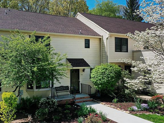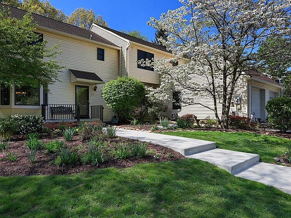 Nestled in the picturesque Concord Ridge neighborhood, this recently updated 3-bedroom, 2.5-bathroom home exudes charm and elegance. Numerous recent upgrades enhance the property's appeal. Both the front and back storm doors have been replaced, along with a new roof and gutters. The HOA has also replaced the sidewalks and stairs, with plans underway to update the deck. The property features a deck, paver stone area, beautiful landscaping, and a wooded lot, offering a sense of privacy and tranquility. Inside, the kitchen boasts tiled floors, stainless steel appliances, including a microwave installed in 2024, and a newer refrigerator. The kitchen is complemented by oak cabinets, a garbage disposal, and a granite breakfast bar. The foyer features tiled floors with a convenient closet, while the rest of the first floor is adorned with hardwood flooring. The family room seamlessly flows into the living room, with the family room also serving as a cozy TV area. The living area includes a charming wood-burning fireplace. The powder room features newer tile, a new vanity, and a window for natural light. The finished basement, completed in 2014, offers plush Berber carpeting, a storage room, and ample closet space. The laundry room, located in the basement behind louver doors, adds convenience. The HVAC system was installed in 2007. Other notable updates and features include windows, a hot water heater, a sump pump, and French drains. The master bedroom boasts an ensuite master bath with a new counter and toilet, tile flooring with a hardwood look, a new sink with a quartz counter, and a shower stall. With a total of three bedrooms, including the finished basement that offers flexible space for an office, bedroom, playroom, or workspace. All three baths have been updated within the last few years, with two new vanities and three new toilets. New cordless blinds have been installed throughout the home. The main bath has been updated with a bath fitter liner and comes with a transferable warranty.