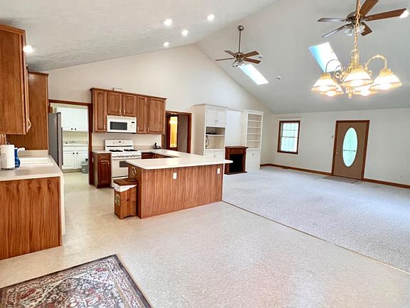 One level living at its best with everything on the main level. This beautiful home offers an open concept that includes the kitchen, breakfast and living room area with cathedral ceilings, skylights for natural light, and lots of recessed lighting. There is solid wood doors and trim throughout the house, huge primary suite w/walk in closet, and oversized bath w/separate shower and bathtub, separate laundry room with built in ironing board and laundry sink, large rocking chair front porch and covered rear deck perfect for relaxing morning and evening. The outside offers lots of extensive landscaping, sitting areas, 40' x 30' detached garage with a 30' x 11' heated (propane) office/workroom space, chicken coop, and storage building. The home has fresh paint throughout, the carpet has been professionally cleaned and septic was just pumped. These sellers are as motivated as any as we've ever seen. They're ready to sell.