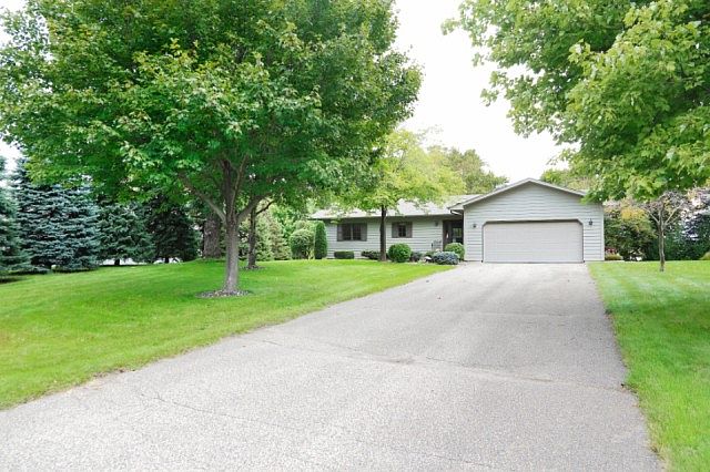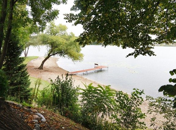 Quality built, walkout rambler on private island on fully recreational North Center Lake (750 acres). 200ft of sandy lakeshore, connects to South Center Lake (835 acres). Mature trees, stunning landscaping, large stone fire pit, picnic area & boat house. Newer roof, skylight & wood laminate flooring in the kitchen. Exterior repainted and deck stained in 2016. Finished LL features fam rm w/FP, custom bar area & kitchen rough-in, 3rd BR, 3/4 bath & 3 storage rooms. City sewer & water!! A must see.