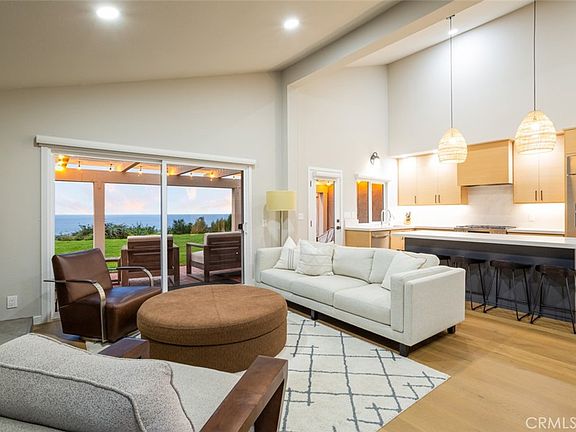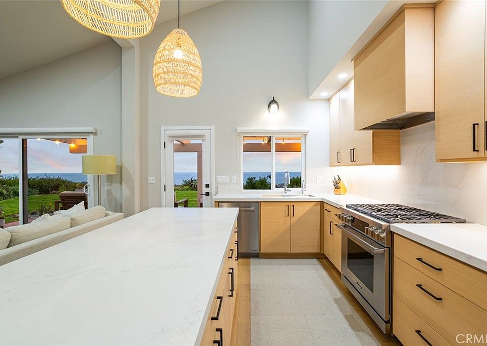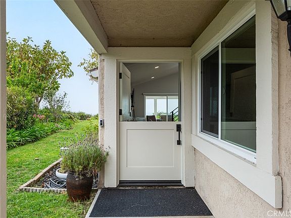 Perched on the highest street in the desirable Presidential Heights II neighborhood of Southeast San Clemente, this stunningly remodeled end-unit home offers panoramic ocean views and privacy at the end of a cul-de-sac. From the back patio, enjoy expansive vistas capturing Seal Rock, Catalina and San Clemente Islands, and dazzling California sunsets. Inside the custom dutch front door, the 1,799 SF open floor plan features vaulted ceilings, French wide-plank oak throughout the main level, and a main floor primary suite. The designer's kitchen looks to be straight out of a magazine with rift-cut oak cabinetry and custom hood, quartz countertops and backsplash, Dacor stainless appliances, and statement light fixtures. The primary suite has double closets that are fully built out with California Closets systems, maximizing storage. The en-suite has double sinks, backlit mirrors, and an updated walk-in shower. Upstairs are two generously sized bedrooms also with closet organization systems and a shared full bath with extra-deep tub. Other property features include a 2-car attached garage with Electrolux washer and dryer, custom water fountain on the back patio, natural gas connection for patio grill, custom window treatments, and so much more. Retreat in style in the most upgraded home in Presidential Heights II, a community with well-kept grounds and four pools and spas. All this located just 5 minutes from world-famous surf breaks and beaches, San Clemente's downtown shopping and dining scene, and halfway between San Diego and LA.