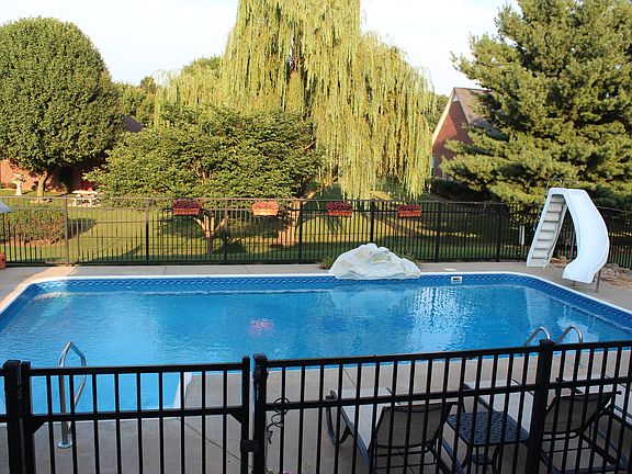 Custom 1-owner home with 18 x 36 fenced salt water pool; Open living area/fireplace, dining room, utility with office space & large master suite; Custom kitchen & bay breakfast area (all stainless kitchen appliances remain); Cherry cabinets & granite; Cherry hardwood, slate, tile & carpet; Tray ceilings, wide doorways/trim; 4 bedrooms (3/bonus) & floored attic; Covered front porch & screened back porch, mature landscaping, brick/stone exterior, large 2-car side entry garage & attached storage area.