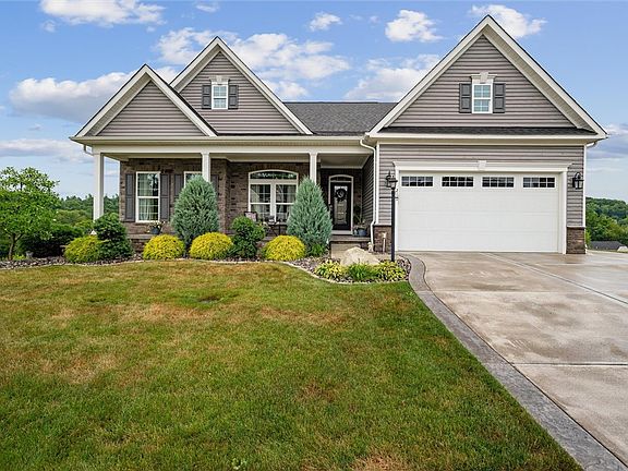 Spectacular 4-year young home in the Brook View Farms neighborhood within Seneca Valley School District. This pristine beauty is loaded with so many upgrades...step inside to enjoy. The open concept living space with beautiful architechtural detail, rich hardwoods, and floor to ceiling windows is simply stunning. While the equipped kitchen and dining space is every entertainer's dream! Take the party outside or just simply relax on the screened-in patio. The primary suite is a sanctuary and has been upgraded with a California Walk-In Closet. One additional bedroom, full bath, den, and laundry complete the main floor. Downstairs enjoy another level of living equipped w/an 11' cement bar, tons of storage and plenty of space to entertain, relax, or play. Additional room currently a playroom can be converted to a bedroom. Outside is a 50x20 stamped cement patio and a fenced in yard. Great location too. Just minutes from Zelienople/Cranberry, I-79 and Route 19.