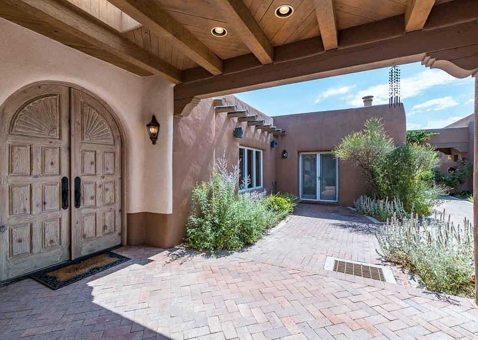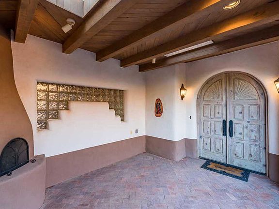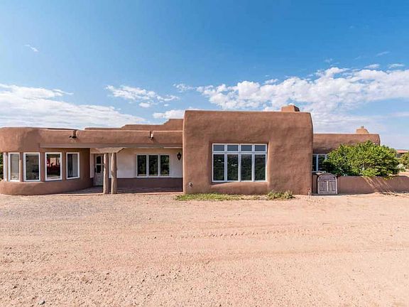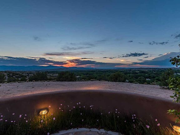 Exceptional Santa Fe Adobe offering luxury and privacy on the Nambe Hilltops. This home sits on an impressive 9.79 acres which allows for seclusion while maintaining stunning 360-degree panoramic views. No expense was spared on this double thick adobe walled home. Nine-foot ceilings throughout with a 12ft high great room. Two large living areas, formal dining room and a well-appointed chefs kitchen with breakfast nook, allow for large gatherings while still maintaining a warm feel. The Master bedroom is separated from all other en-suite bedrooms. There is an additional in home office with a private entrance. Marvin Wood Windows, Radiant Heating, Diamond Finished Walls and Wood Beamed Ceilings are just some of the many wonderful features this home offers.