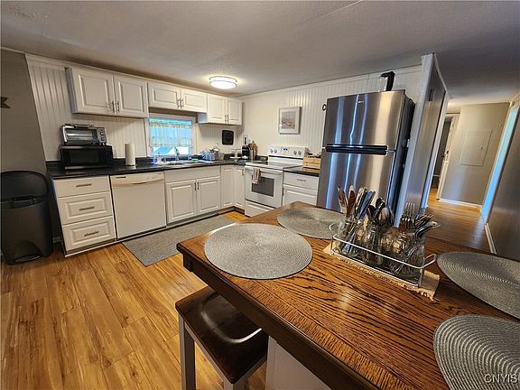 Welcome home to this adorable single wide! Used as a second home and at one time an AirBnB, but could also be a year round home. 3 bedroom 1 1/2 bathrooms with a sunroom and a bonus room currently being used as a 4th bedroom. Some furnishings will stay. There is a large front deck for all your entertaining needs and a storage shed. Front yard offers a large shade tree. Walking distance to a couple great restaurants, Clayton Marina and the Clayton Golf Course. Just minutes away from all local restaurants, shops, parks and activities. This property will not disappoint. Reach out today for a showing!!!!