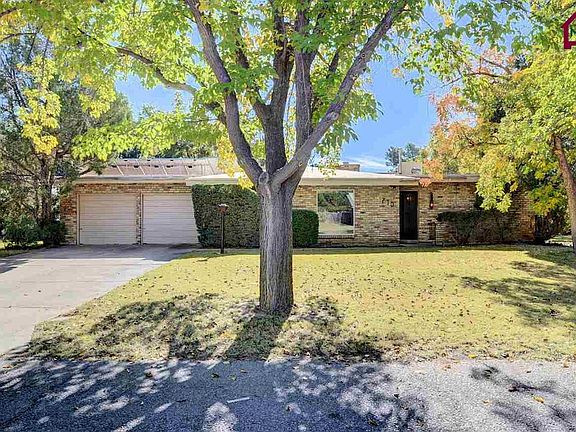 In a park-like setting...attractive 4 BEDROOM brick home on a tree-lined street in Mesilla Park!! Lush lawns with producing pecan trees front and back - plenty of room for your own garden. Dramatic vaulted ceiling with skylights in LIVING ROOM - FORMAL DINING - FAMILY ROOM areas. Stylish brick designer wall separates living areas. Galley KITCHEN with wood cabinets, electric glass cook-top, dishwasher, refrigerator and breakfast nook. FAMILY ROOM features a cozy wood fireplace, ceiling fan & slider. Spread out with four BEDROOMS. North/South orientation with open back patio. Private backyard ready for outdoor enjoyment. Storage shed stays. Reduce your electric bills with your own solar electric system and newer windows. Membrane roof - 2 Car GARAGE with workshop area. Close to historic Mesilla, area restaurants and NMSU! Come home to 210 Capri Rd!