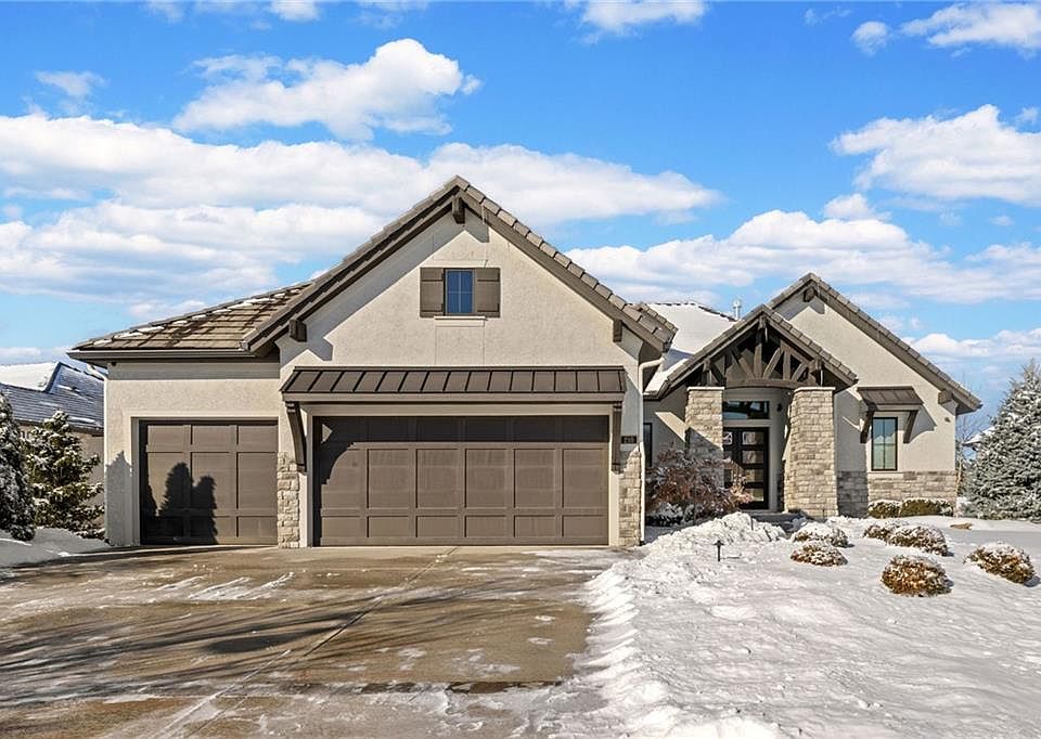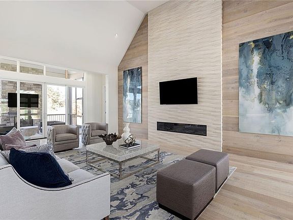 This Loch Lloyd beauty, designed by award-winning builder Don Julian, features a modern look with an abundance of clean lines, light colors and a fresh, relaxed ambiance. Using a palette of white, cream, grey and navy the home boasts a coastal ambience and flair, and the exquisitely unique lighting throughout adds a style that leans towards contemporary. This reverse floor plan offers the primary suite, home office, living area, powder room and kitchen on the main floor, with a grand entertainment space on the lower level. The vaulted ceiling in the living room, open flowing layout, and an abundance of windows create a bright and airy feel throughout. The focal point of the great room is the linear fireplace framed with dry stacked stone and surrounded by a wall of wood flooring. The kitchen is the perfect combination of style and function. Featuring handblown glass backsplash and rich navy cabinetry in the side kitchen, opaque glass cabinetry, under cabinet lighting, a huge island with quartz waterfall countertop and matching quartz backsplash behind the gas range plus top of the line appliances, it is visually stunning and practical at the same time. A home office with navy accent wall and pocket door, huge walk in pantry, powder bath, and laundry each feature a unique style and function. Completing the main floor, the primary suite showcases the re-emerging style of luxury wallpaper and a gorgeous bathroom chandelier. Other highlights of the bathroom are a floating vanity with two vessel sinks, soaker tub, glass walled shower and a thoughtfully designed custom closet. An expansive entertainment area in the lower level includes a large curved island/bar flanked by smoked paneled mirrors, plus large open spaces for a media viewing area and game tables. Two large ensuite bedrooms on the lower level complete this extraordinary home. Loch Lloyd offers the security & lifestyle of a gated community with fabulous amenities & social activities.