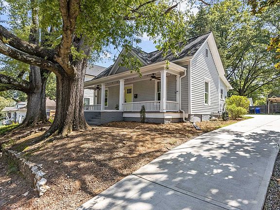 Savor the ambience of daily living in this beautifully restored Craftsman home with 10 foot ceilings, huge rooms, beautifully restored hardwood floors, charming covered front porch w/ fans & private fenced back yard w/ raised beds & gathering patio for al fresco dining or relaxed evenings around the firepit. Kitchen has been elegantly updated w/ plentiful cabinetry, canned lighting & fabulous gas stove. Sunshine splashes throughout every room through the many windows. New HVAC (Jan 2023). Long driveway paved in concrete (2021) provides abundant parking for your visitors. Refrigerator & washer/dryer convey for easy move in. Tucked away on a quiet street just a few minutes walk to the up & coming Driver Street commercial Corridor featuring Sofia's Pizza and Ideal's Sandwich and Grocery. Awesome location in close proximity to everything Durham offers! Minutes to The Golden Belt, Tobacco Trails, DPAC, Duke University, Durham Bulls Stadium, medical care, shopping, breweries & more. A rare opportunity to own a home & lifestyle in this highly sought after community in the midst of revitalization!