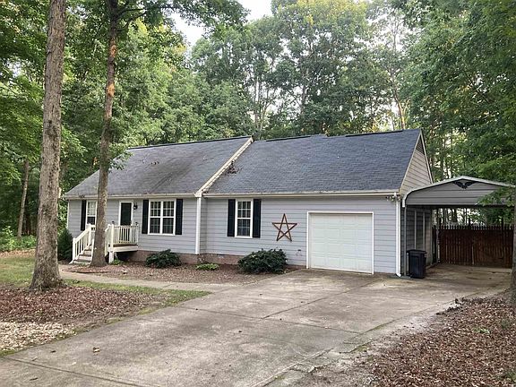 Cute 3 bedroom, 2 bathroom ranch on almost an acre in Youngsville. Loads of storage space with this home, which has a garage, a carport, and a storage shed. Private fenced in backyard with deck off the kitchen. Gas fireplace in living room. No HOA fees.