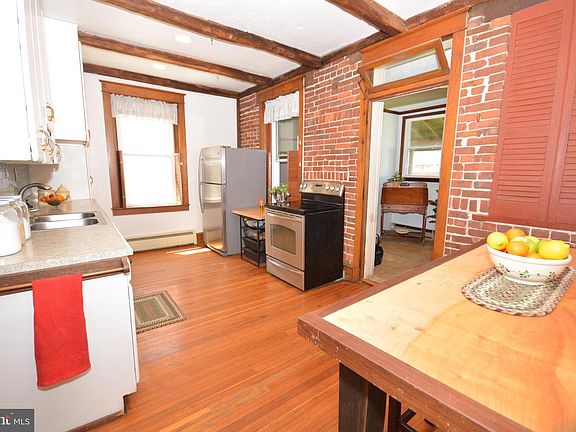 Well-maintained semi-detached brick home! Newer windows and roof, over 2300 sq. ft living space including improved basement; chestnut floors in Living Rm, Dining Rm & Kitchen with French Doors, exposed beams and exposed brick in kitchen opens to cozy mudroom with storage closets and door to deck and patio. Three large Bedrooms plus enclosed balcony/sitting room and full bath off hallway. Large attic. You will love the spacious family room and full bath in the basement. Gated door to patio for summer grilling with friends, lovely front porch, and rear deck. Off-street parking and oversized 1 car garage. Walkable neighborhood & close to rail trail, schools and recreation center. Move-in ready! Showings may begin Tuesday, June 1 @ 1 p.m.