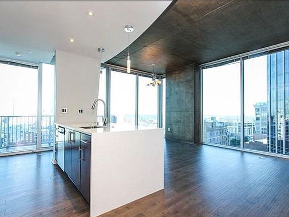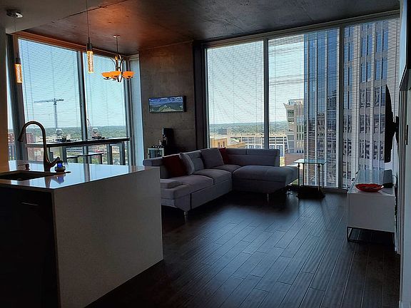 Completely customized corner unit like no other. Dark wide hardwoods throughout, gorgeous waterfall quartz kitchen island, gutted bathroom with polished porcelain tile in showers and marble counter tops, upgraded LED lighting throughout, porcelain back splash in kitchen, unique stained ceiling, as well as 2 parking spaces 275 & 276 on P8. Building amenities include swimming pool, bbq areas, state of the art fitness center, club room, billiards, movie theater, business center and more!! 24 hour security and concierge service in the stunning lobby with access controlled garage, doors and elevators. Amazon drop box for secure package delivery. Located in the bustling heart of Uptown Charlotte, easy walking distance to stadiums, theaters, restaurants, nightlife, and multiple grassy pet friendly parks.