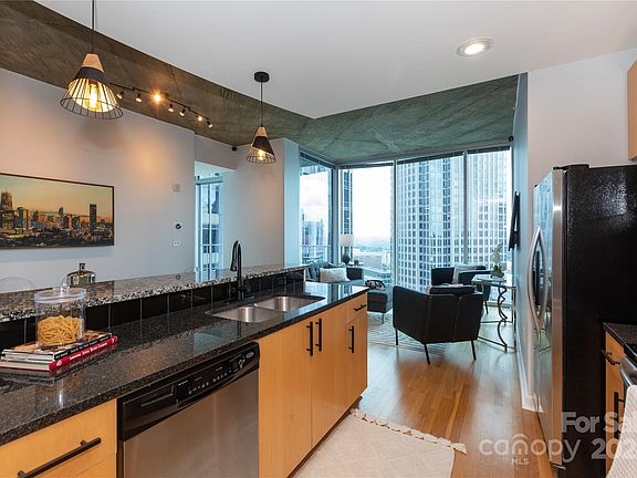 Charlotte's expanding skyline is your backdrop in this high-floor 2 bedroom at Avenue Condominiums. #3207 faces the heart of Uptown, with a top to bottom view of the Bank of America tower, and through to South End. Super functional layout, with an entry hall to the dining and kitchen, which has granite countertops, stainless appliances, designer lighting and black hardware. The living room is floor to ceiling glass, connected by a hall to the spacious balcony. The primary suit is on the corner, with windows on two sides, two closets and a refreshed bath. Bedroom two is a flex space, great also as home office, and connected to another full bath. 2 deeded parking spots in secure deck. Amenity-filled building with pool, resident lounge, gym and concierge. Welcome home!