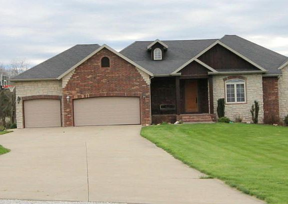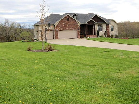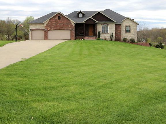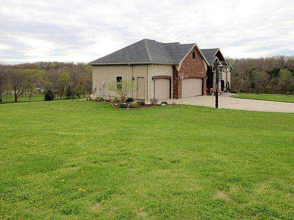 Welcome home to 210 Churchill Village perched just above the Finley River in Christian County. This flawless 3 acres has Rogersville address and is in Ozark school district. Nestled in the Churchill Estates just off Smyrna Road, this property has pride of ownership on full display. Outside lawn is green and plush and owners keep entire property mowed and manicured. Mature landscaping in front of home showcases the gorgeous mix of brick and stone work. Home has grand front entry with large wooden columns, brick steps and decorative concrete front walk. Inside greets you with tall ceilings and exposed beams in the living room. Grand windows offer stunning views but the focus in this room has to be the double sided stone fireplace with openings in both living room and kitchen. Kitchen
