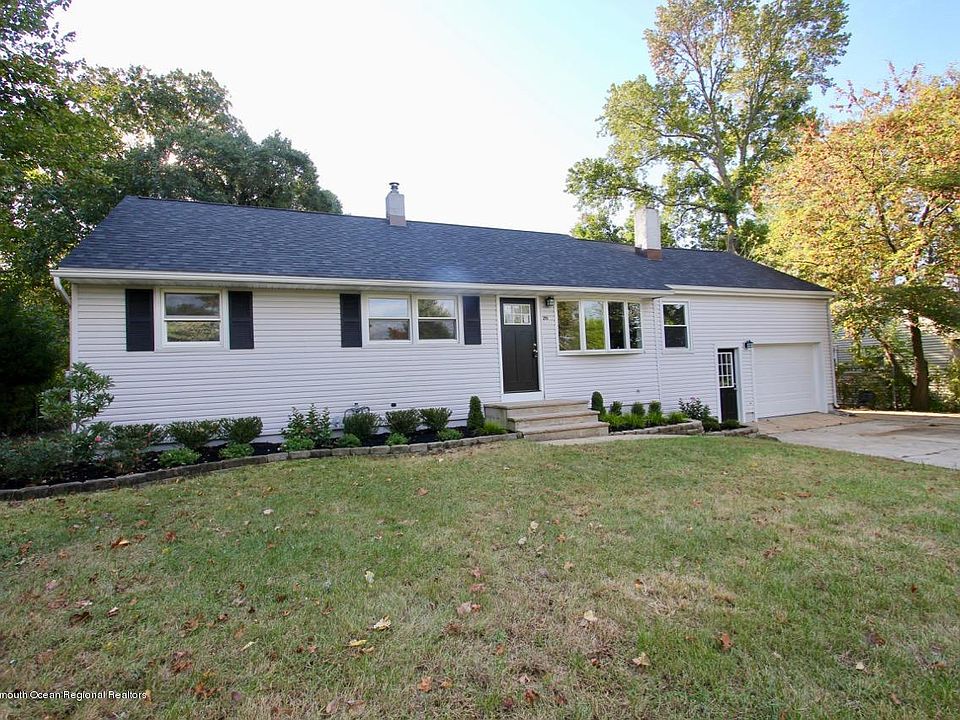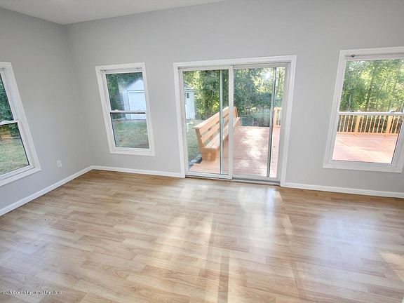 HAMILTON GARDENS Expanded RANCH with PRIVATE backyard bordering SHARK RIVER PARK. Attached 2 car deep Garage plus Detached 12 x 20 Garage Shed. Open Floor Plan - Living Room with wood burning FIREPLACE; Updated kitchen and bright SUN ROOM. Sliders to the 21 x 25' deck. 3 Bdrms, 2 Full baths - one with custom tile walkin shower. Bonus finished basement offers even more versatile living space. Gleaming hardwood floors. Mud room. A great value, Convenient to GSP & the Beach !! Put it on the top of the list.