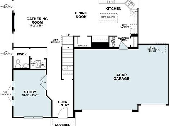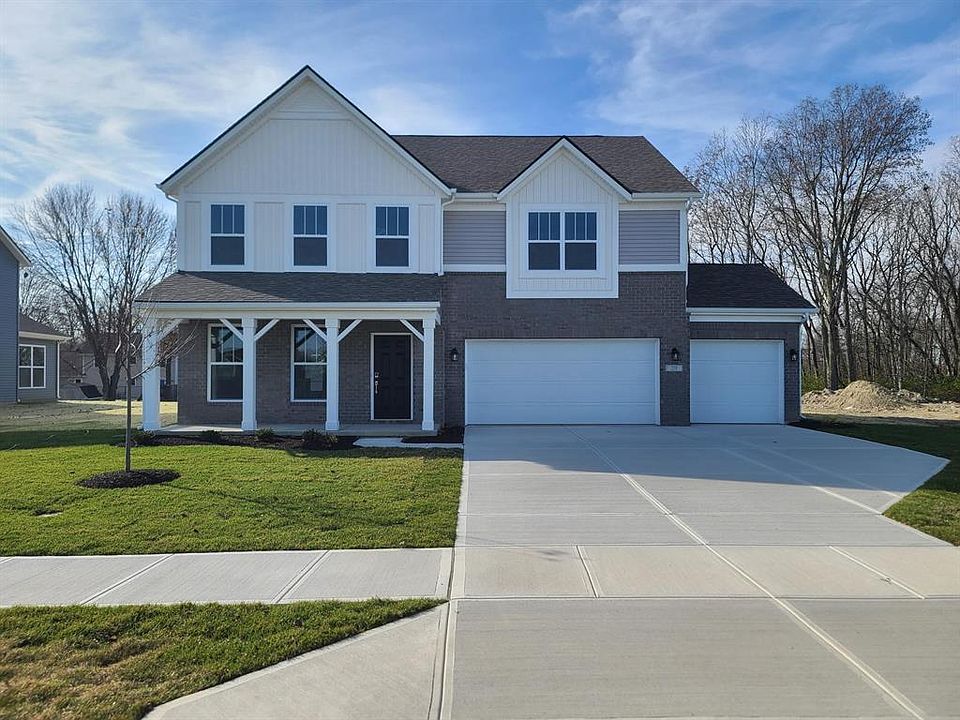 This two-story home showcases 4 bedrooms, 3.5 bathrooms, and a 3-car garage. A study with double doors starts off the inside of this home. The gathering room comes equipped with an electric fireplace. The open-concept kitchen comes with a sizable center island to ensure that you have plenty of space and the attached dining nook is big enough for your whole family. The loft and laundry room are the first rooms on the second floor. The secondary bedrooms and a full bath are found farther down the hallway. The owner’s suite has been equipped with a tray ceiling to give the room extra height. This suite also includes a luxurious bathroom that includes a soothing walk-in shower, a private toilet, and a double-bowl vanity.