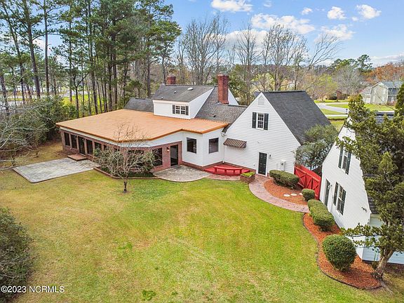 Golfers Dream! This secluded custom golf course home is located near military bases, hospitals, shopping, restaurants, the community college, and more. Positioned on a quiet cul-de-sac this gorgeous 4-bedroom custom built home has interior designer appeal. The exterior siding/ trim and most interior bedroom/ entertainment room walls have been freshly painted with the addition of new carpet added to the bedrooms. The downstairs large master suite includes walk-in closets, adjoining sitting area and fireplace. The master bathroom features wood paneled walls with granite counters and twin sinks, a large granite walk-in shower, jacuzzi tub, heated floors, and towel warmer. The main living area/ entertainment room overlooks the 15th tee box at the Jacksonville Country Club golf course and has floor to ceiling windows as well as a raised area for a baby grand piano or other specialty furniture or fixture. The entertainment area is designed to accommodate a pool table, card table and also boasts custom cabinets/ bookcases, drop down movie screen with projector and a fully functional custom bar. The imported Italian granite floors in the main living/ entertainment areas are heated throughout for ambient warmth and optimal comfort. The laundry room adjoining the kitchen includes a built-in pet kennel. The second level features 3 bedrooms, a full bathroom, and a large bonus room. The detached garage has plenty of room for a car, golf cart, and lawn equipment including extra storage not only on the ground floor but in the room above.