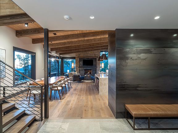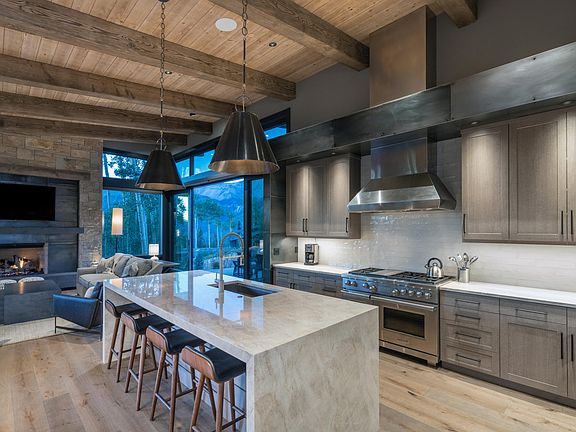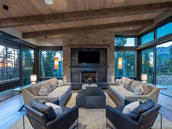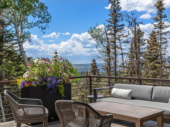 This 5 bedroom move-in ready turnkey home Is available now to enjoy your own Mountain Masterpiece. Ten foot sliding window walls open up the living room to impressive mountain peaks on the East & to a cool sheltering aspen grove on the West. A Taj Mahal Quartzite counter top waterfalls off the ends of the large kitchen island. Massive oak beams & natural block iron posts support the vaulted ceiling. There is a master suite on the main level as well as 2 more upstairs. The bunk room and additional guest suites, and a generous entertainment area are on on the lower level. The thoughtfully designed ski room has a direct & convenient ski access to Sundance Ski Run and massive porches make it easy to enjoy the the hot tub in any weather along with over 1800 SF of decks and patios.
