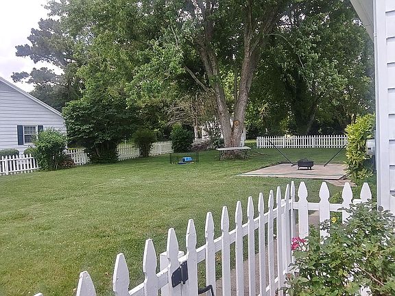 Ranch home with three spacious bedrooms containing hardwood floors. Living area has ample room and light as well as a propane fire place. Open kitchen with many feet of countertop space. A large two car garage with workstation is attached to the home accessed by way of the kitchen. The laundry and 1/2 bath is located in the garage and is equipped with heat and A/C. Mature trees shade the front and back yards. Brand new patio in the back yard for outside seating and grilling. Fencing lines the perimeter of the backyard for safe keeping of children and animals. New heat/AC pump installed in 2021. A brand new water heater as well. Secondary heat source is electric baseboard heat.