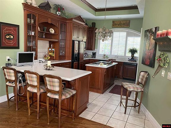 Gorgeous Big Creek home on prime lot w/beautiful landscaping & circle driveway w/printed concrete. Beautiful open floor plan w/spacious kitchen & lots of cabinets. Butler's pantry leading into dining area, perfect for serving guests! Vaulted/beamed ceilings, wet bar, windows galore throughout home. Master suite comes w/sitting area, gas fireplace, doors to patio. Large walk-in closets, Jacuzzi tub, etc. Spectacular sunsets to be enjoyed on patio overlooking pond between 3rd & 4th hole of Big Creek Golf Course.