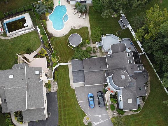 Beautiful Custom Build Mediterranean/European inspired home is a show stopper! It embraces both modern and traditional architectural styles that work together throughout the unique multi-level floorplan. The front entry opens to a rotunda style foyer. On the left, stairs lead to the double doors of the private second floor Master suite with sitting area, solarium, two walk-in closets and Master bathroom. Continue up and you will find a door to the front facing veranda. Exit the foyer to your right and you find a formal living room with beautiful bowed windows, skylights and grand stonewall fireplace. The formal dining room sits adjacent but separate. Several steps down from the dining room lead to the contemporary spacious kitchen. Natural light streams in through floor length windows and glass doors that adorn the outer wall of the breakfast area and family room, both of which have access to the large deck. Down the hall , is a powder room, two bedrooms, a full half bath and the interior door to the 2 car garages, with built in storage compartments and the adjoining single garage. At the end of the corridor you will find a pleasant surprise thru the doors to the stairs of the lower level! Over 1300 sq. feet if finished space, boasting of a full service bar, family room with fireplace and dining area. The rustic feel and appeal of this area make a perfect getaway for relaxing and entertaining. There is also a full bathroom, full kitchen, two bedrooms, one of which is currently used as an office and exercise room. In addition, there is 600sq ft. of unfinished space where you will find the laundry area, dual gas furnaces, wine cellar, storage space and Bilco doors. The house is amazing but the backyard is a true paradise! You will forget you are in New Jersey when you are sitting under the shade of the gazebo, surrounded by beautiful flowers and plants. Cool off in the saltwater pool and hot tub while enjoying a drink from the cabana bar. A half bathroom is conveniently located in the cabana. This picturesque backyard with gorgeous landscaping also features a covered grill area, 3 storage sheds and gardening sink.