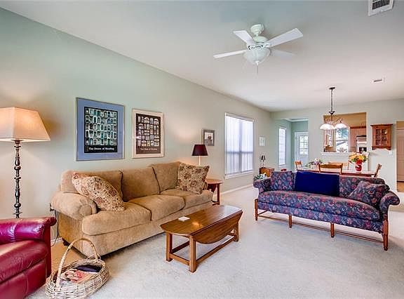 Enjoy low maintenance living in this lovely Sun City situated on a quiet cul-de-sac. Enjoy your morning coffee from your covered back porch as you look out into the serene greenbelt. This community is ideal for the active resident with multiple walking/jogging trails, community pool and fitness center, golf course, and more! Annual dues include yard maintenance. Spacious master suite w/private master bath, abundance of natural light, open floor plan, and 2 additional bedrooms + guest bath!