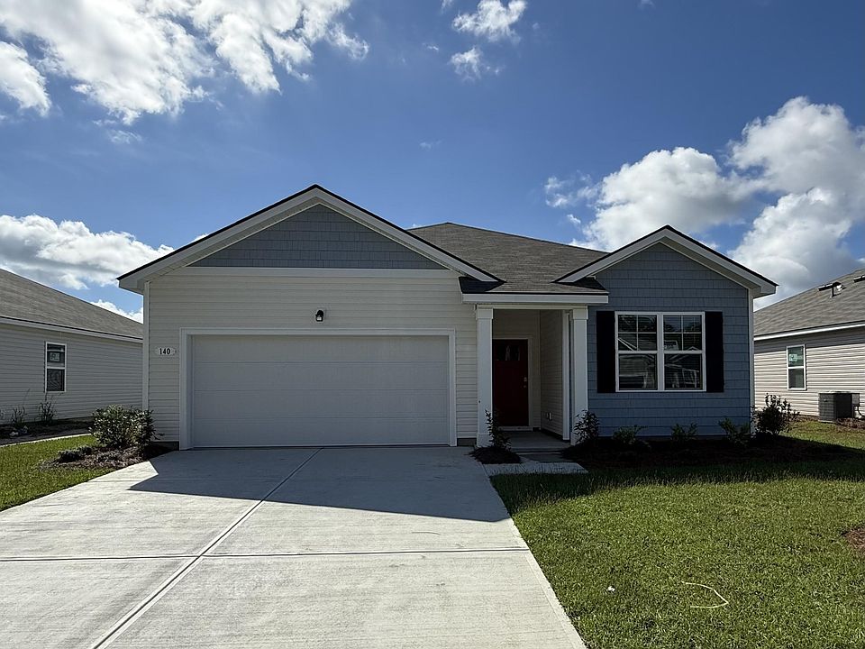 This thoughtfully designed one level home is one of our most popular floor plans! With an open concept living room, dining room and kitchen, this home is bright, spacious, and designed for entertaining guest or comfortably interacting with family. The kitchen features granite countertops, a tile backsplash, 36" cabinets, a spacious pantry, stainless steel appliances including a refrigerator, and island with breakfast bar! Your primary suite awaits off the back of the home with a spacious walk-in closet and master bath with double sinks, a linen closet and 5' shower. Two secondary bedrooms are at the front of the home providing separation from the primary suite. Enjoy the coastal air from the back porch as you wind down in the evening! This is America's Smart Home! Each of our homes comes with an industry leading smart home technology package that will allow you to control the thermostat, front door light and lock, and video doorbell from your smartphone. *Photos are of a similar Aria home. Pictures, photographs, colors, features, and sizes are for illustration purposes only and will vary from the homes as built. Home and community information, including pricing, included features, terms, availability and amenities, are subject to change and prior sale at any time without notice or obligation. Square footage dimensions are approximate. Equal housing opportunity builder.