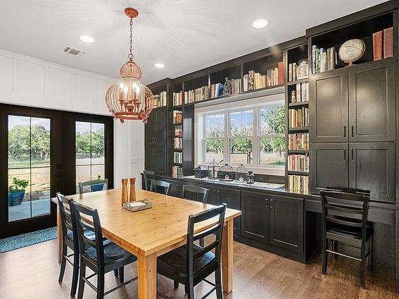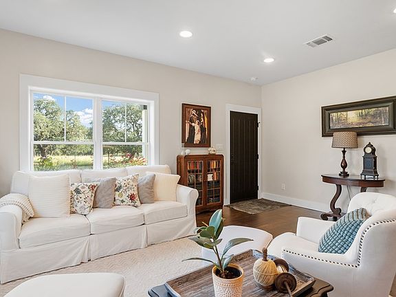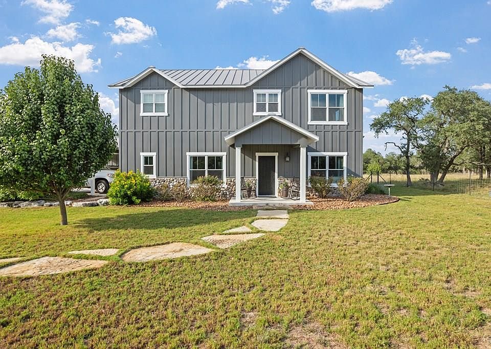 Peaceful living in the Texas Hill Country just minutes from Main St. Fredericksburg! Sitting on a private and pristine 25+/- acres, this two story Modern Farmhouse home offers an open concept layout. Downstairs is wood flooring and a generous living room with large windows which let in the natural light while allowing you to view the native Texas wildlife and axis outside. Flowing from the living room is the dining space which is accentuated by built-ins, adding extra storage and desk space. The kitchen features a large island with drawer storage topped with stainless, two ovens, and stainless farmhouse sink. Custom cabinets, tile backsplash, and soap stone countertops create an enjoyable and functional space. Behind the kitchen is the pantry with abundant storage plus room for a second fridge. The convenient laundry room features a soap stone counter with sink, storage and two water heaters. One of the two primary bedroom suites is downstairs. It is quite spacious, has a walk-in closet and looks out into the fenced front yard. It's adjoining bathroom features double sinks and a makeup vanity in gleaming multilevel marble countertops, an over-sized tiled walk in shower, and separate Jason hydrotherapy tub. Moving upstairs, you'll find a large media room, the second primary suite and two bedrooms. The second primary suite offers great views of the countryside and adjoins a full bathroom complete with striking marble counters, double sinks, a makeup vanity, a free-standing soaking tub, walk in shower, and a large walk-in closet. The two additional bedrooms each have their own walk-in closets and are connected by an expanded Jack and Jill bathroom design only sharing a shower/tub combo. Outside you can park three vehicles under the attached carport which has a climate controlled storage space approximately 130 SQ FT adjacent to it. A 1200 SQ FT metal building with electricity, an overhead door and a concrete floor is just across the driveway and offers versatile uses. You can also enjoy cool evenings out on the expansive back porch or sitting next to the fire pit which allows you to enjoy beautiful native vegetation, various species of oak trees, little cedar and unobstructed endless skies. For the gardener, there is a high fenced garden area with a few raised beds and a water source. This entire gorgeous and must see property is perimeter fenced with an electric gate at the main road, and the 1.0 acre homesite is also fenced. Recent fresh interior and exterior paint. More information: https://www.adamccarroll.com/listings/210-dally-rd-fredericksburg-tx/