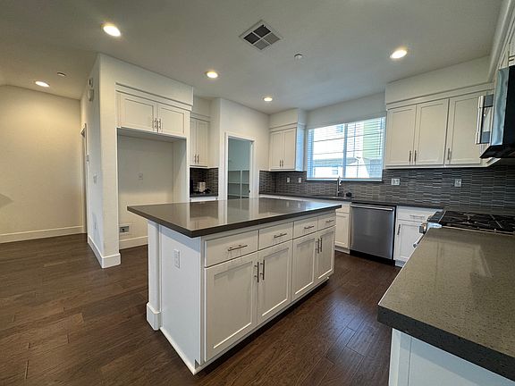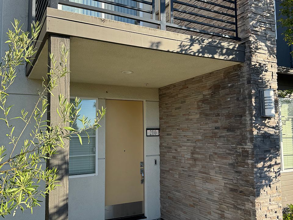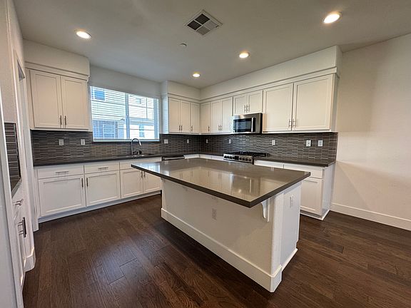 Townhouse Built in 2020 Open-concept Welcome to this beautifully designed, recently built home featuring 2 spacious bedrooms, 2.5 bathrooms, and a large downstairs den perfect for a home office, playroom, or guest room. The home showcases a blend of lush carpet and stylish engineered hardwood flooring throughout. The open-concept kitchen offers plenty of space to cook and gather, complete with a large center island and a generous walk-in pantry. Both bedrooms feature private ensuite bathrooms, including a luxurious primary suite with a walk-in closet and a spacious bath with dual sinks. Additional highlights include central air conditioning and a convenient upstairs laundry closet located near the bedrooms. Set within a vibrant community offering parks and playgrounds, this home blends modern comfort, functionality, and family-friendly amenities. we have solar panels. owner pays Garbage and water. Tesler charging is in garage.