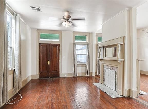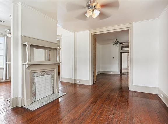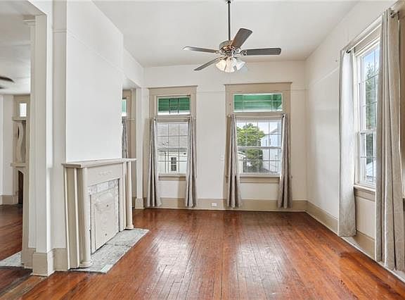 Spacious 2 BD / 2 BA upper unit in central Midcity location. Covered front porch is a great place to take in the breeze & enjoy your morning coffee! Huge double parlor living room with fireplace mantle, formal dining room, large kitchen with ample cabinetry & gas range. Wood floors throughout. 2 primary suites on either side with big bedrooms & dressing areas and 2 full baths. Laundry room with hook ups for washer/dryer. Shared backyard with the downstairs unit. Tenants are responsible for all utilities and lawn maintenance. Sorry, but no pets. Enjoy neighborhood conveniences with shopping, restaurants & grocery all at your doorstep. Canal streetcar line 2 blocks away!