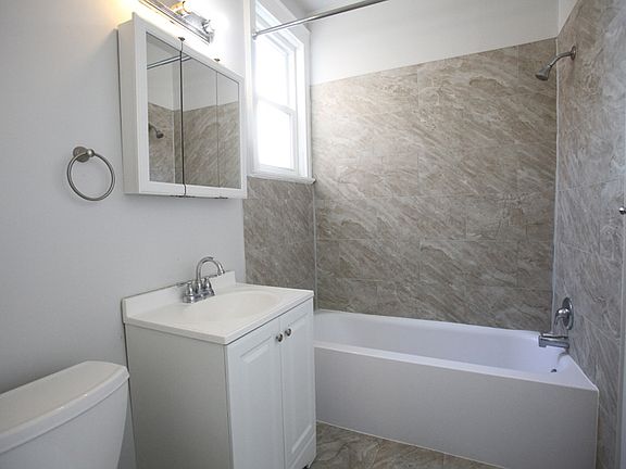 Newly renovated kitchen and bath, carpeting in bedrooms. Has backyard. Basement available for $1,000 for 1st fl. unit only. Optional garage w 1 car inside, 1 -2 cars outside for add'l $200. per month. If basement is agreed, 1st fl tenant gets complete private use of backyard. If basement NOT agreed, backyard is usable to both units. Bus out front on street, easy NYC access.