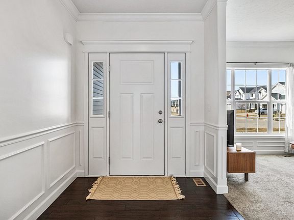 Don't miss this stunning two-story traditional home in Savoy! From the moment you step inside, you'll appreciate the 9-foot ceilings and hardwood flooring throughout. The main level features an open floor plan with a beautiful kitchen, complete with an island, walk-in pantry, and stainless steel appliances. The kitchen and dining area flow seamlessly into the spacious living room, which boasts large windows for ample natural light and a cozy gas log fireplace. A versatile bonus space on the first floor is perfect for a home office, or media room. Upstairs, you'll find four spacious bedrooms, including the impressive primary suite with vaulted ceilings, a large walk-in closet and an en-suite bathroom featuring double sinks, a whirlpool tub, and a separate shower. The partially finished basement offers even more living space, including a second family room, a kitchenette, a fifth bedroom, a full bathroom, and 9-foot ceilings. There's also an unfinished area with plenty of room for storage. Additional highlights include a convenient drop zone off the garage entrance, a radon mitigation system, and a new roof and gutters installed in November 2023. Situated on a large lot backing up to an open field, this home offers beautiful sunrise views that you can enjoy from your back patio. Plus, it's conveniently located near Willard Airport, the University of Illinois, shopping, and dining.