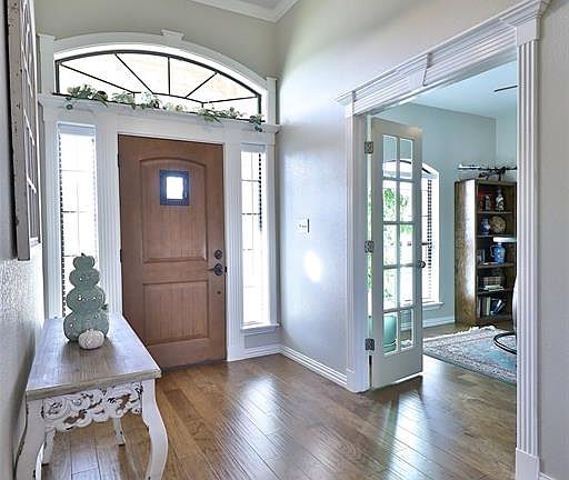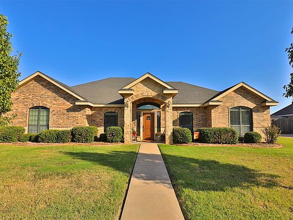 Beautifully maintained and loved home in Wylie ISD. Large landscaped yard. 4 bedrooms in split arrangement, 2 baths, open living room with fire place flanked by windows, wood plank flooring. Breakfast area adjacent to kitchen is spacious overlooking back yard. Front room off entry with french doors is versatile, dining room or makes a great office. Granite kitchen counter tops & breakfast bar, plentiful cabinetry for storage. Nice laundry with sink. Master features a corner jetted tub, extra large tiled shower, walk in closet, dual sinks. Covered back patio plus extended patio. Sprinkler system. Brick home with stone accents, Remington Estates, convenient to Abilene & schools, city sewer, no city taxes!