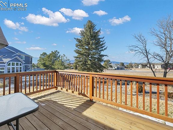 Perfect location in Gleneagle on a very quiet cul-de-sac!Large Open Floor Plan with Views of Pikes Peak! Large Master Bedroom with french doors & walk out to private deck! Gourmet Kitchen with granite counter tops, island, gas cooktop, double wall ovens, hardwood floors, breakfast nook area & walk out to another large deck with views! Large 15 X 27 Patio off Main level Family Room with Fireplace and Wet Bar. Main Level Laundry with large closet/pantry. Large 20 x20 garage. All appliances included. Backs up to an open space and access to trails! Stucco exterior with easy to maintain fully landscaped yard. Central Air Conditioning, New Furnace with Humidifier. Easy access to I-25, Air Force Academy, shopping, restaurants and schools.