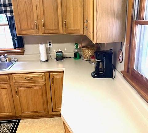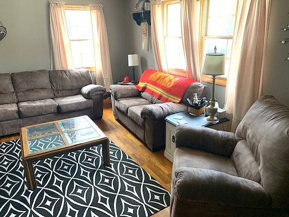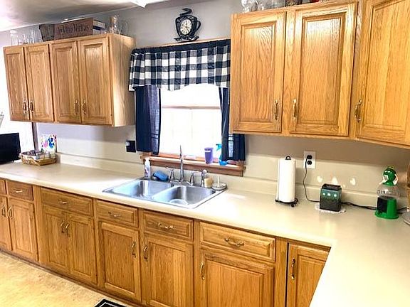 Entrance: Front door opens to huge living room with hardwood floors, painted walls and picture window. Dining Room: Open to kitchen and living room plus it has a corner brick fireplace. Kitchen: Lots of oak cabinets. Lots of counter space. Stainless steel/black appliances included. Vinyl flooring. Bath: Bath has large vanity, newer fixtures, tub/shower combo and new commode. Bedroom: Hardwood floors, painted walls, closet. Bedroom: Very large! Hardwood floors, painted walls, closet. Entrance to basement is located near living room and dining room. This dry basement has the basics installed for 3 bedrooms and an extra bath! Basement: Insulated with foam walls, 2 x 4 walls framed up for 3 bedrooms and bath. Some wiring already in place. Some bath fixtures included for basement level. All new PEX plumbing with distribution box. Breezeway attached from house to 2 car garage. Cement floor, aluminum windows. Extra storage room. Deck on back yard is accessible from breezeway. 2 lots for this house for your garden or kids toys. Only 4 blocks from school.