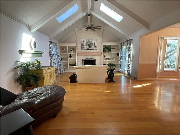 Looking for a place to call HOME? This could be it. Large great room with vaulted ceilings, skylights, fireplace with nice book shelves and hardwood floors. Great Room opens into dining area and kitchen making a great area for entertaining. Kitchen includes a nice Island and a lot of cabinets with a pantry. Great Room opens onto a large deck with a fenced in back yard with lots of flowers and includes also 2 small sheds for your storage area and gardening shed. Master bedroom is large with a sitting area and a large walk in closet. Hallway bath includes a large soaking tub for your pleasure. The basement includes a full bath, bedroom, office space and a nice family room with a fireplace. Roof and gutters were replaced in 2023 HVAC was replaced in 2023 and water heater is approximately 3 years old So like new where it counts. Come take a look Priced to Sell with these Motivated Sellers