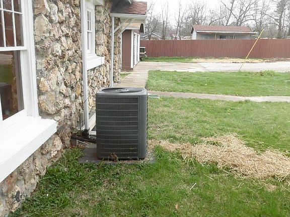 Owner Financed Lease/Purchase: $890 per Month with $7,500 Down payment. Total purchase price: $99,900. This classic stone house is naturally beautiful and solid. The home was built in-or-around the 1930s when they used rough cut stone instead of smooth cut stone, which adds to the character of the house. The floors are all original hardwood that is still as solid as the day they put in place. The home sits on a large city lot with a two car garage and brand new guttering, channeling all the way to the road. From the side screened in porch entrance, you will enter into the sun-room, which has several windows to allow for plenty of natural sunlight for hours of reading and relaxation. This room would also be a great playroom for children. From here you will enter the living room with those stunning hardwood floors, new hand laid local stone fireplace and several custom-made bookshelves. 417-469-4100 The front door will be to the left and has a large storage closet on each side. From there we will step into the large dining room with three large windows to allow plenty of natural sunlight in and a large storage cabinet for all of your dining-wear and display pieces. From the dining room, you will enter the kitchen which has two medium-sized windows, plenty of storage, and a brand new kitchen counter, sink, faucet, and backsplash. From the kitchen, you will pass into the backroom area which is also the laundry room and entrance to the unfinished basement. From here you can walk into the first bedroom, then into the hallway with the access to the upper loft, past the bathroom, into the second bedroom and finally back into the living room. The upstairs is one large open loft area that could easily be converted into a large master bedroom and bathroom. The basement is unfinished and houses the water heater, all the new PEX hot and cold water lines, and the inside section of the new HVAC unit with all new duct work. The roof of the home is brand new, and the roof of the garage has been repaired somewhat recently. This home has a great history and has stood the test while standing firm on a solid foundation. The house once belonged to an author who wrote a few best selling novels, and I am trying to find her name now. This home is ready to give the new owner decades of comfort and shelter within its warm and welcoming walls.