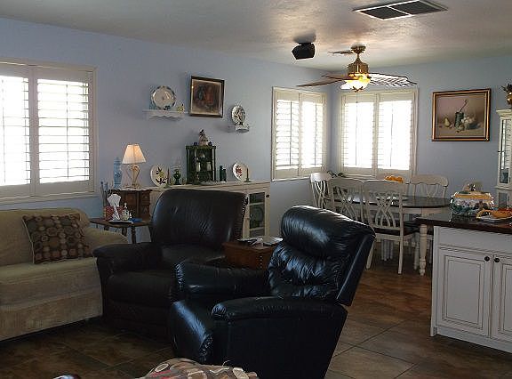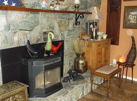 Beautiful 4 bdrm, 2 bath home located in Crestline Subdivision. Recently remodeled with upgraded kitchen cabinets, countertops, breakfast bar and appliances. 5 burner propane range, large walk-in pantry has AC plug and custom shelving. Two pellet stove in living room and family room, new plantation shutters and ceramic tile throughout, double closets and walk-in closet in master bedroom and double closets in bedrooms. Skylights in Kitchen and Bath and ceiling fans throughout. Two heat pumps, 250 gallon propane tank, covered patio in back yard next to the Swimming pool and solar heated spa. Composite deck, automatic sprinkler system, "Grotto like" retreat with koi pond (goldfish included). Two car attached garage and 1 car detached garage/workshop with storeroom. A must see meticulous home!