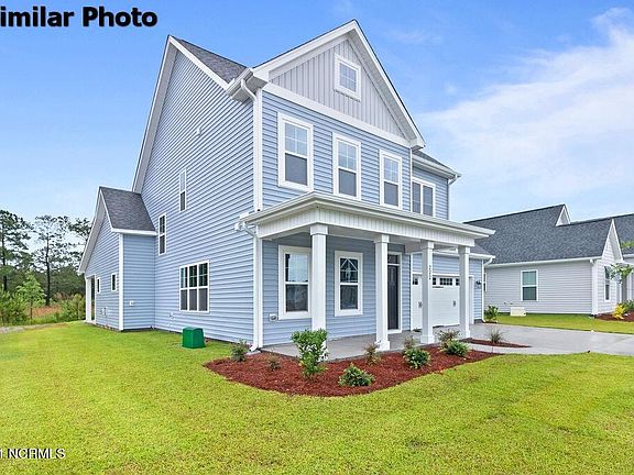 The Danbury is one of Hardison Builders' best selling homes and there is no secret as to why! Lovely to look at and relax on those generous front and back covered porches, but just wait until you step inside! The dining room with its on trend trim work will take your breath away. The living room will make you want to kick your feet up and enjoy the fireplace with surrounding built ins. But the heart of the home is the kitchen and what a heart this one is! The large island with built in seating is unbelievably gorgeous, the pendant lights above it will make you glow, the QUARTZ countertops give you a terrific prepping surface, and the staggered white cabinets, the soft close drawers, and the stainless appliances round out the feel of a true centerpiece to your new home. In the FIRST FLOOR Primary Suite, the soaring vaulted ceiling in the bedroom and the fully tiled shower will make you sing! Upstairs, are 3 more bedrooms and 2 more FULL baths with all baths boasting Quartz tops! Do not miss your chance to tour this home and claim it for your very own. Magnolia Reserve is a gorgeous neighborhood in the Surf City/Hampstead area with an easy commute to shopping, restaurants, services, and yes! BEACHES! Hardison Building adds all those extra touches you've been looking for so that you can move in and start living that beach life right away. Don't miss out on seeing these elegant homes by this phenomenal builder, make your appointment to be wow'ed today! **Similar Photos and Cut sheets are representations only. Builder reserves the right to alter floorplan and features due to supply availability and efficiency. Buyer to verify schools.