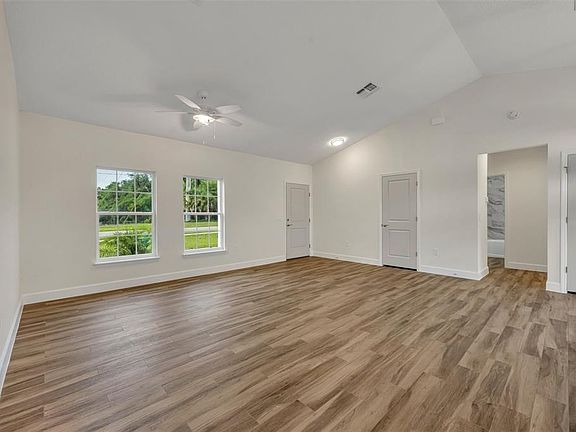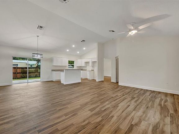 Be the first to live in this newly built home on a .32-acre corner lot. Offering 1,300 sq. ft. of living space, this property features three bedrooms, two bathrooms, and a two-car garage.The open floor plan includes vaulted ceilings in the main living area and a split bedroom design. The kitchen is equipped with granite countertops, a center island, pantry, and dining nook. Both bathrooms feature tiled tub walls to the ceiling, and the home has tile flooring throughout with accented interior doors. Additional conveniences include an interior laundry room, energy-efficient Low-E windows, and sliding doors leading to a concrete patio. Located just one mile from De Leon Springs State Park and less than 20 minutes from Downtown DeLand. Beaches including Daytona, Ormond, and New Smyrna are all within an hour's drive. Available now!