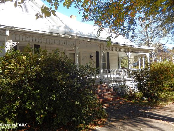 Be a part of history! Restore this charming Queen Anne style cottage with weatherboard siding, standing-seam metal pyramid roof with projecting gables on south and east sides. Central front door flanked by 4/4 sash windows; wraparound front porch supported by turned columns and enclosed by balustrade. Tax records indicate built in 1903; historic registry is dated 1908. Date of rear addition is unknown. Two blocks from the famous Burgaw town square which hosts the annual NC Blueberry Festival. Walk to shops and restaurants in this dynamically evolving quintessential southern small town. Only 2 blocks to the Osgood Canal Greenway and Urban Trail. House does need some TLC - being sold ''as is''. Status of fireplaces is unknown.
