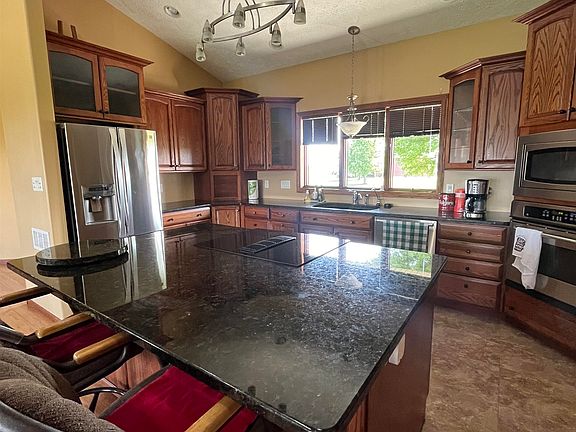 Custom built ranch style home with 1.30 acres 6 miles north of the City of Hastings. Gorgeous kitchen with many amenities including large island with granite countertops and appliances including additional built-in ovens. Dining room boasts a spectacular view, living room with electric fireplace, primary bedroom with walk-in closet, tray ceiling, and ensuite bath with jetted tub. Main floor utilities, sprinkler system, and Bose speakers throughout the home. Basement includes family room with game room, additional bedroom, bath, and elevator! Walkout basement to patio and yard features underground dog fence! This home has a GeoThermal system for heat and air. Attached 3 car garage PLUS an additional 36x60 building for your enjoyment! This is a must see home with so many more amenities! Call today for a showing! HOA is $200 annually.