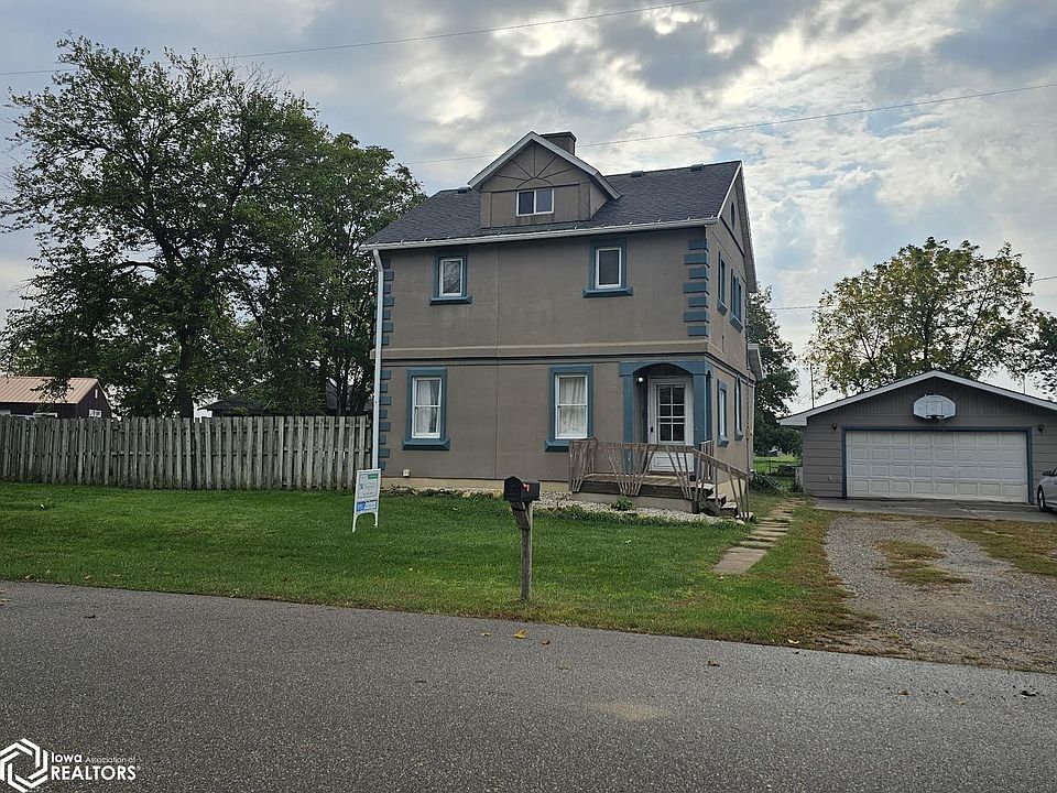 Welcome home to this reasonably priced home on a large fenced lot. Bright and sunny foyer leads to the large living room with a fireplace. The fireplace has not been used. Will be up to the buyers to make this a functioning fireplace. Off the living room room is a good sized dining room. Full bath with laundry hookups on the main floor. Washer, dryer and bathroom mirror do not stay. Upstairs is 3 bedrooms. Kitchen includes refrigerator. From the kitchen you can step out onto the large covered deck overlooking your private backyard. Two car detached garage with a bonus room that is insulated and has window air. Call today to take a look at this reasonably priced home.