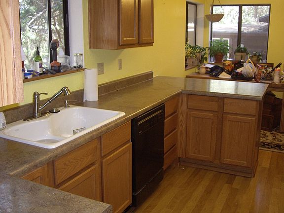 3 BD 2 BA home in nicely treed neighborhood. Main part of the house has wood floors; one bedroom and both baths have tile flooring and the other bedrooms are carpeted. Evaporative cooling with many ceiling fans throughout. Separate laundry room with cabinets. Pellet stove will keep the house toasty warm during cool months. The tiled bedroom also includes heated flooring and a wall heater. The original front deck has been enclosed, creating a perfect room for plants while the fenced back yard boasts a large, covered deck as well as an open deck and large storage shed/workshop with electricity. Nice lot with lots of trees. SELLER IS PUTTING A NEW ROOF ON THE HOUSE. There is a central heating unit, but it has not been used by current owner and is not warranted.