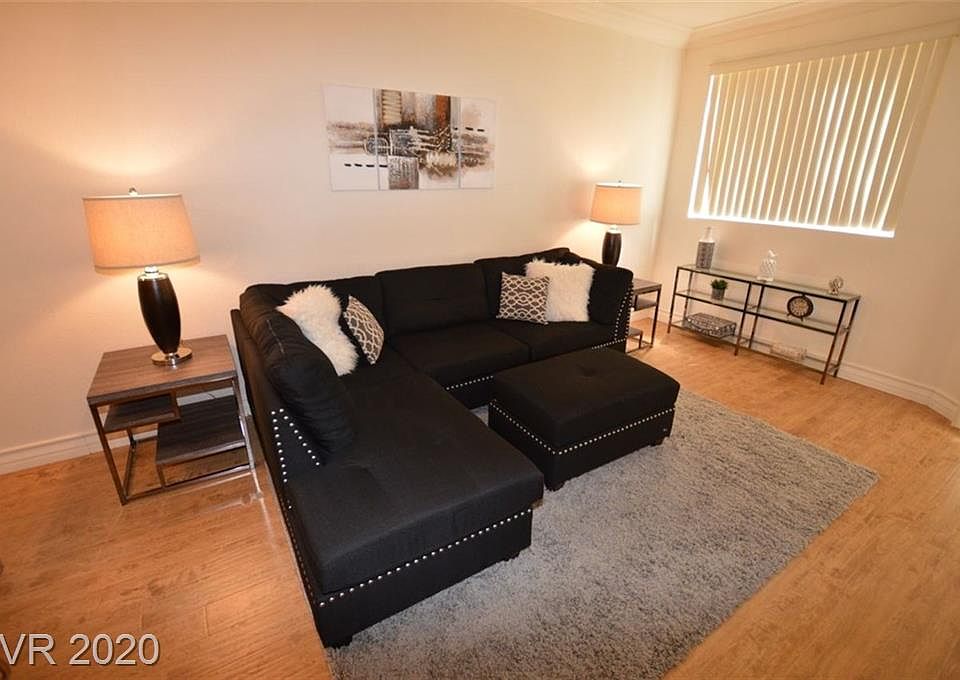 Beautifully Furnished 1 Bd / 1Ba Condo, with Pool View, just 1 1/2 block to the heart of the Las Vegas Strip located in a 16 Acre Lushly Landscaped Community. Condo is Equipped with granite counter tops, Stone & Wood flooring, stainless steel Refrigerator, Range, Microwave and Dishwasher appliances. Utilties and Cable included in rental rate.