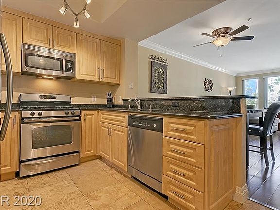 VIEWS VIEWS VIEWS! ENJOY THE VIEWS OF THE POOL AND WORLD FAMOUS LAS VEGAS STRIP FROM YOUR OVERSIZED BALCONY! THIS POPULAR 727 CALAIS FLOOR PLAN LOCATED IN RESORT STYLE MERIDIAN. SHOWS LIKE A MODEL AND WAS USED AS A VACATION HOME AND IS HIGHLY UPGRADED AND WELL MAINTAINED. UPGRADES INCLUDE POLISHED TRAVERTINE AND WOODLIKE FLOORING THROUGHOUT, UPGRADED CABINETS, GRANITE COUNTERS, STAINLESS APPLIANCES WITH NEWER SIDE BY SIDE REFRIGERATOR, NEWER MOEN FIXTURES THROUGHOUT, NEW TOILET, CUSTOM SHOWER WITH HALF INCH GLASS, NEW HVAC REPLACED IN 2020, NEWER SOUND REDUCING DUAL PANE WINDOWS, FULLY FURNISHED WITH ASHLEY PREMIUM SERIES FURNISHINGS, KING SIZED BED WITH PLUSH MATTRESS, SUBTERRANEAN PARKING WITH ASSIGNED PARKING NEXT TO ELEVATOR AND THE LIST GOES ON. THE MERIDIAN IS A RESORT STYLE COMPLEX WITH GUARD GATED ENTRANCE, SECURITY, WORKOUT FACILITY, POOLS AND PLENTY OF GUEST PARKING.THIS IS A ONE OF A KIND UNIT AND COMPLETELY TURN KEY AND READY FOR ITS NEXT OWNER.