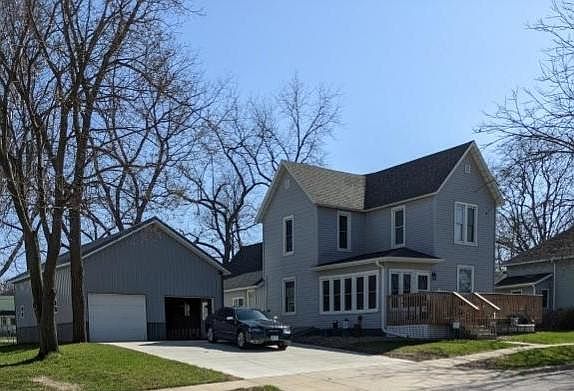 Classic two story with primary bedroom with private bath, second bedroom, and laundry room on the main. Two additional bedrooms and a den on the upper level. Updated kitchen, windows, furnace/AC, and flooring. Great three season porch sitting room off of dining area. Oversize garage with loft. Garden shed in the large back yard with mature shade trees.
